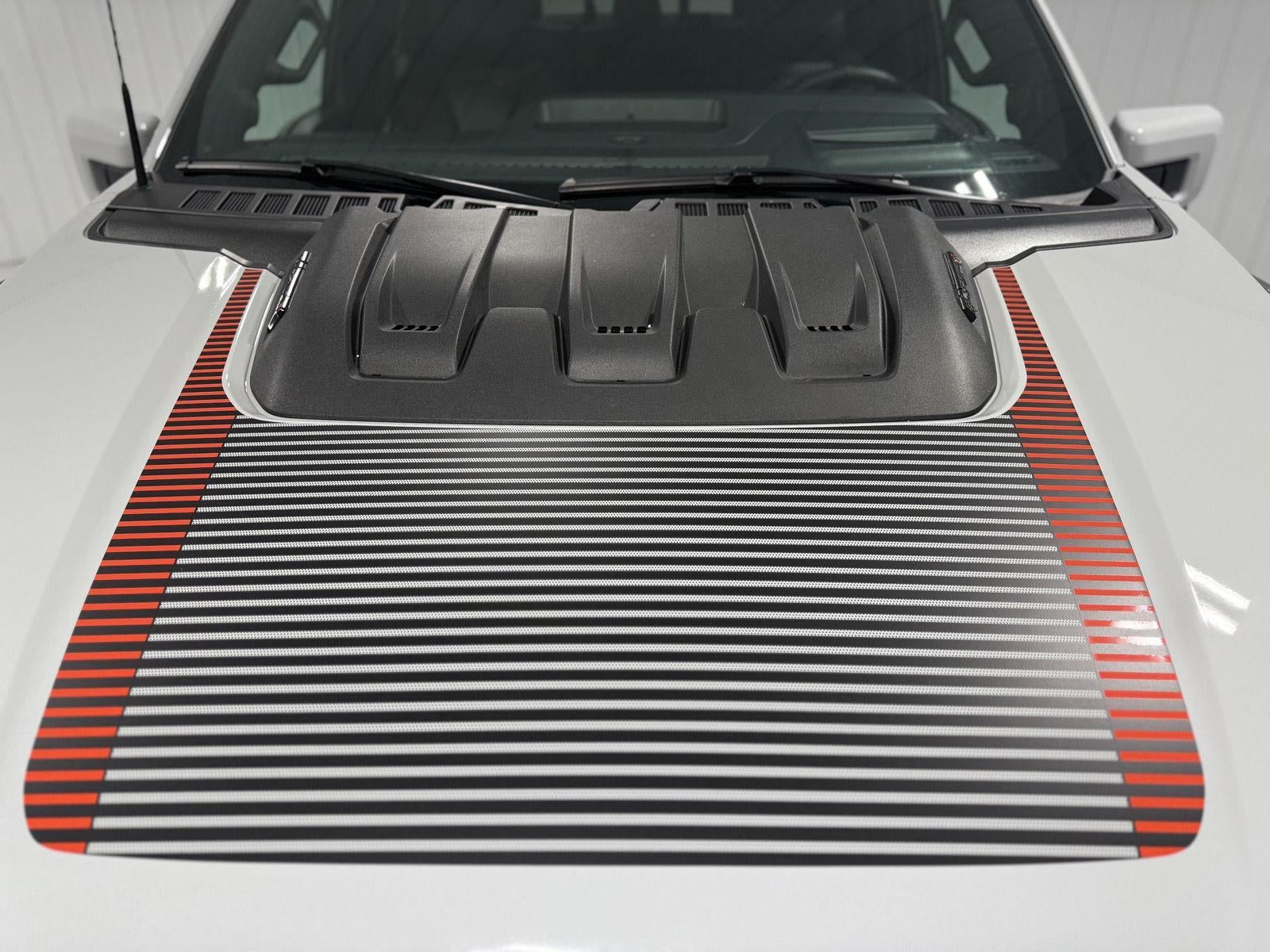 - Includes 5.2L supercharged V8 engine, upgraded dual exhaust, 17 in. forged aluminum bead-lock capable wheel, 37x12.5R17 BSW all-terrain tires, unique Raptor R grille with R badge, unique hood, unique hood vent with R badge, Raptor R badge on tailgate applique, Code Orange front tow hooks, Raptor R exterior graphics, sport tuned shock absorbers, modular front bumper, Raptor R exterior and interior theme, RECARO unique leather with Alcantara suede seat inserts, Code Orange stitching on doors and instrument panel, Code Orange interior Raptor R badges, and carbon fiber interior appliques. Deletes Pro Power Onboard (2kW).