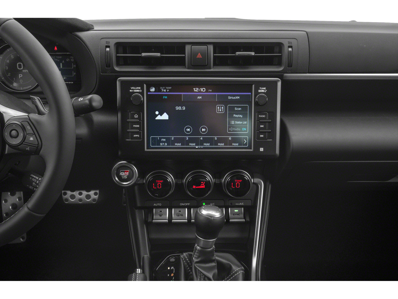 - Radio: GR86 Audio -inc: 8" touch-screen display, Apple CarPlay and Android Auto compatibility, SiriusXM 3-month platinum plan trial subscription, 8 speakers including amplifier, Safety Connect w/1 year trial subscription, Service Connect w/1 year trial subscription and Remote Connect w/1 year trial subscription